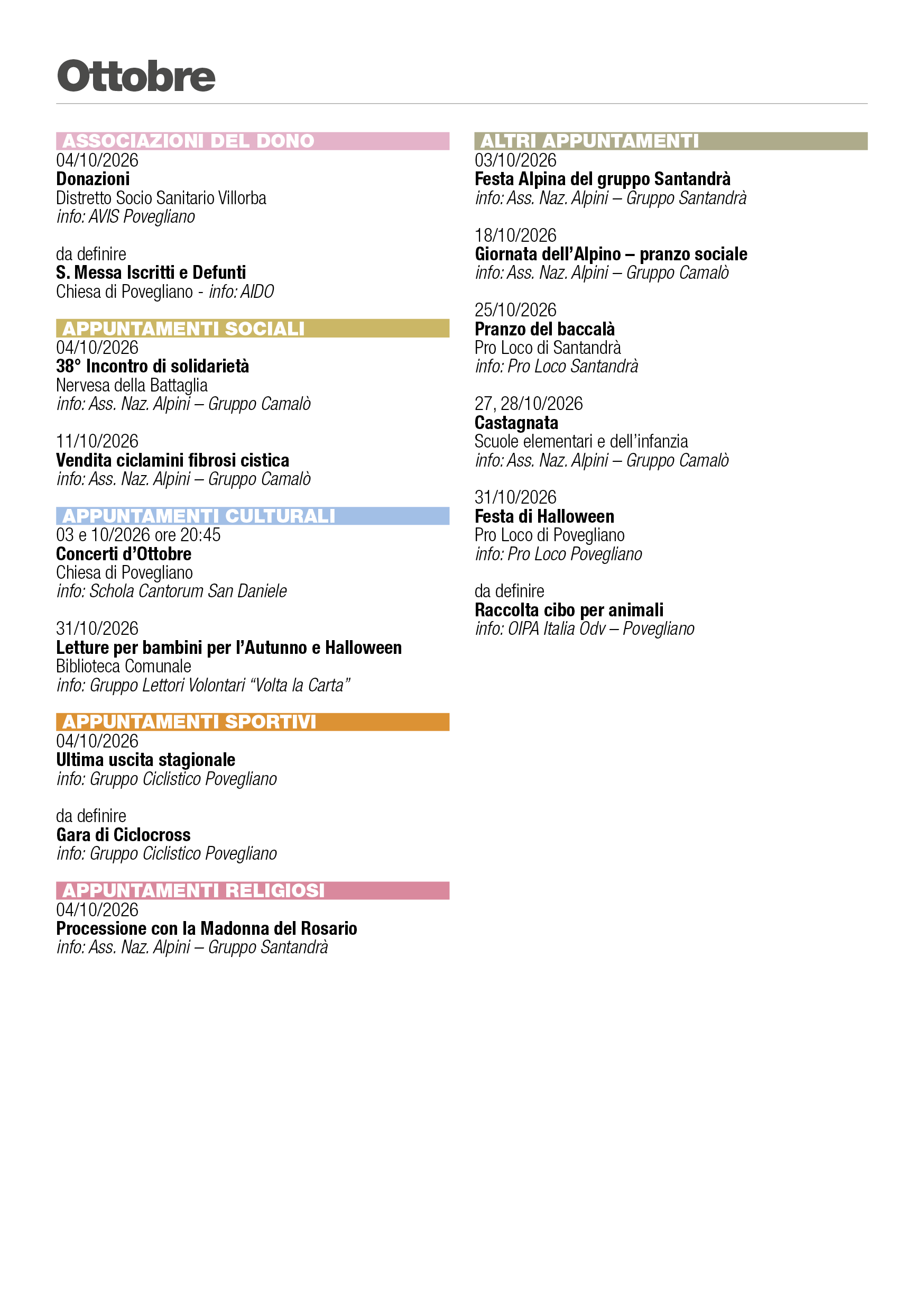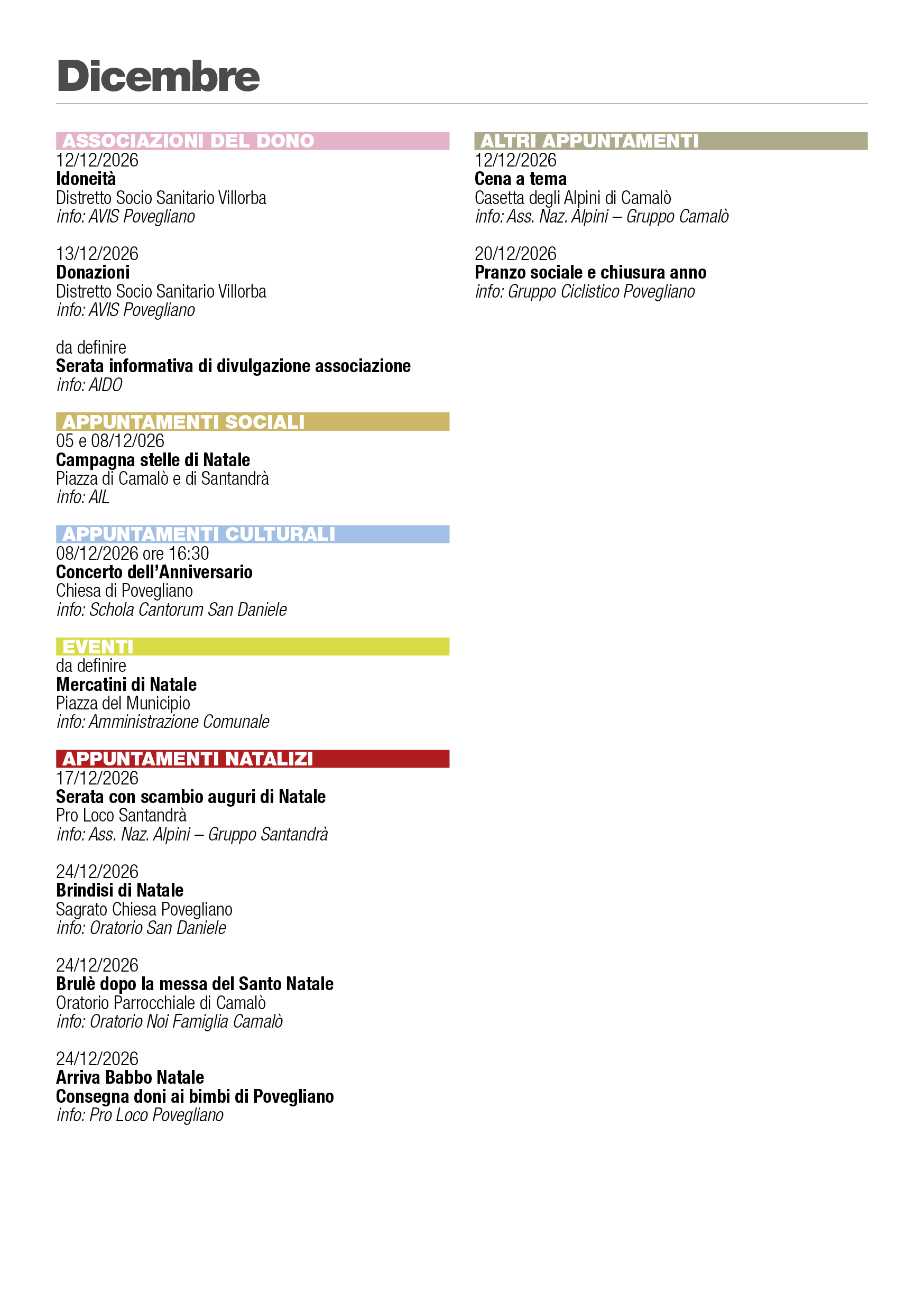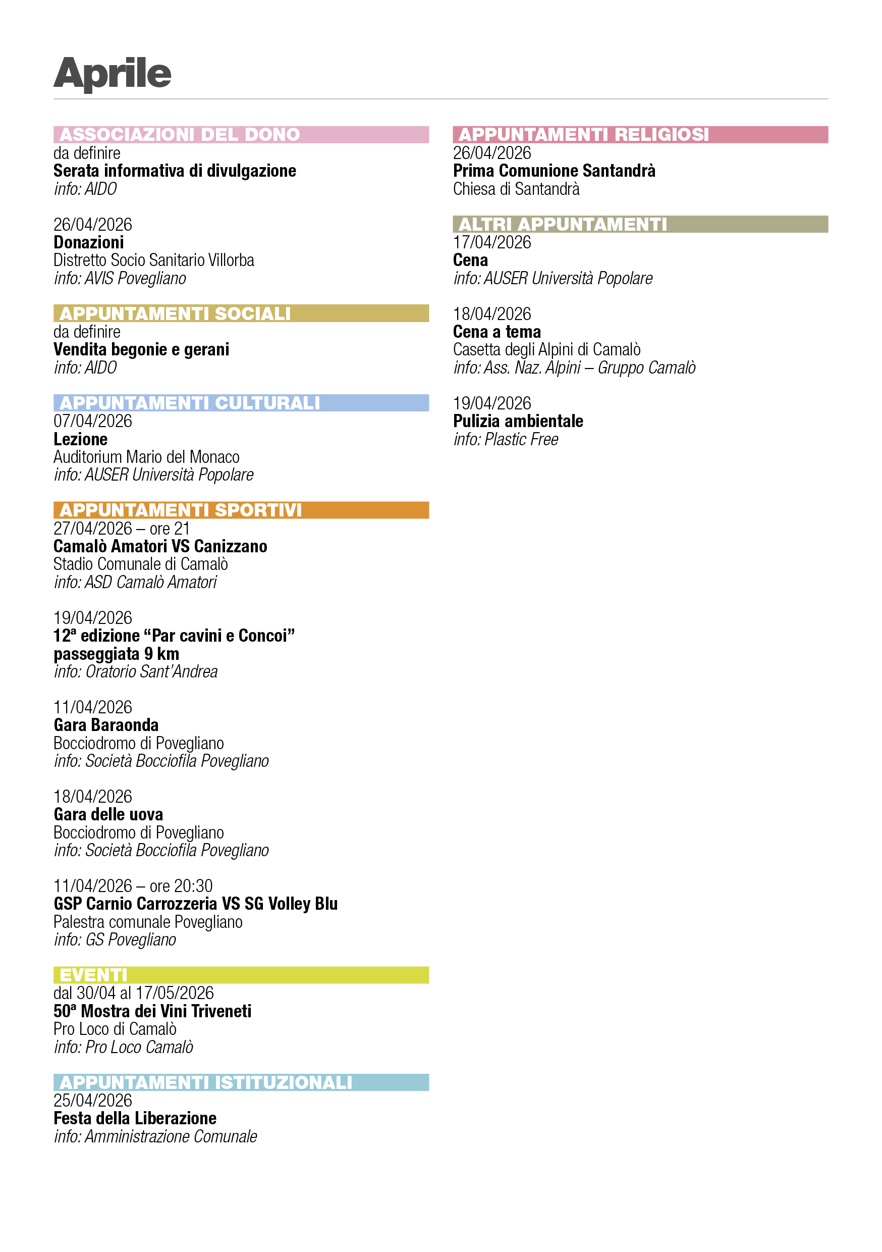 Eventi Povegliano 2026