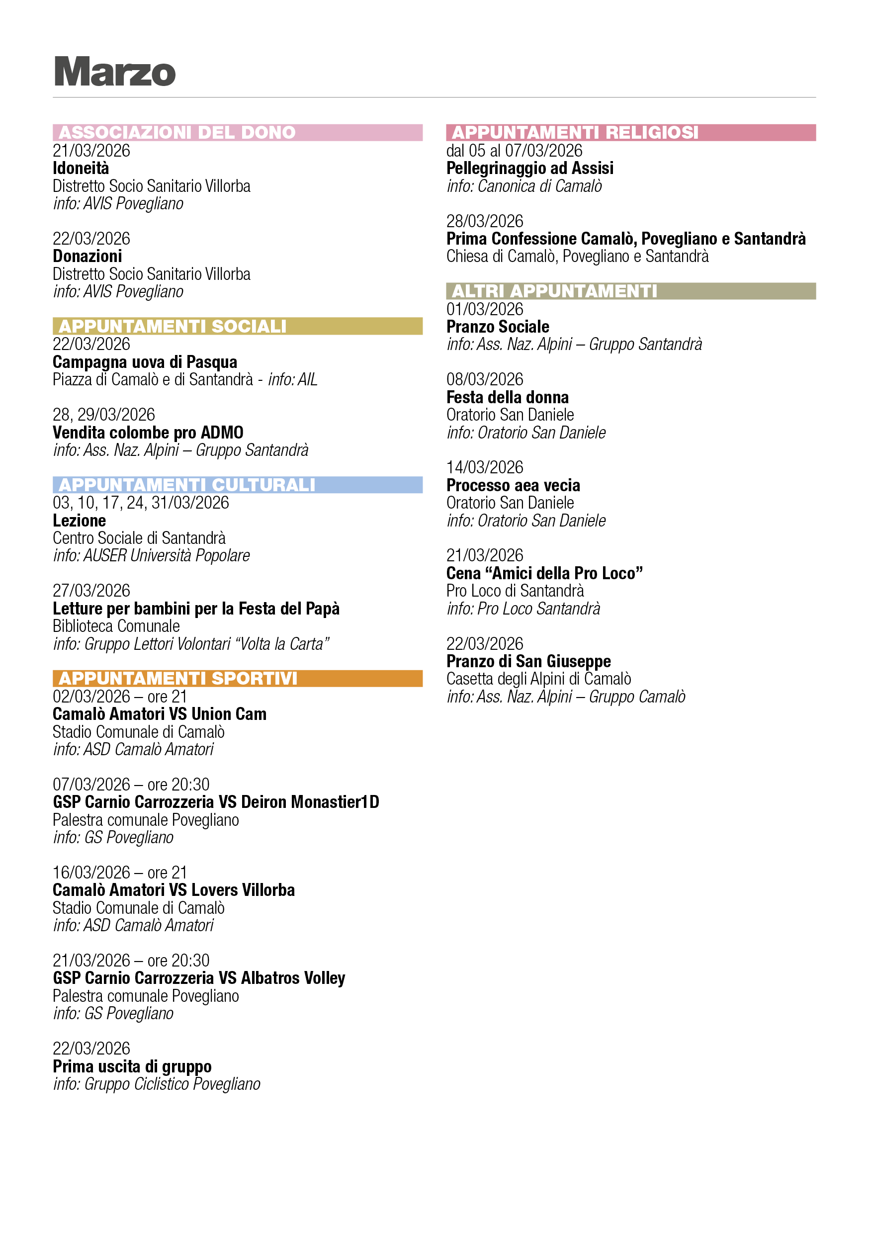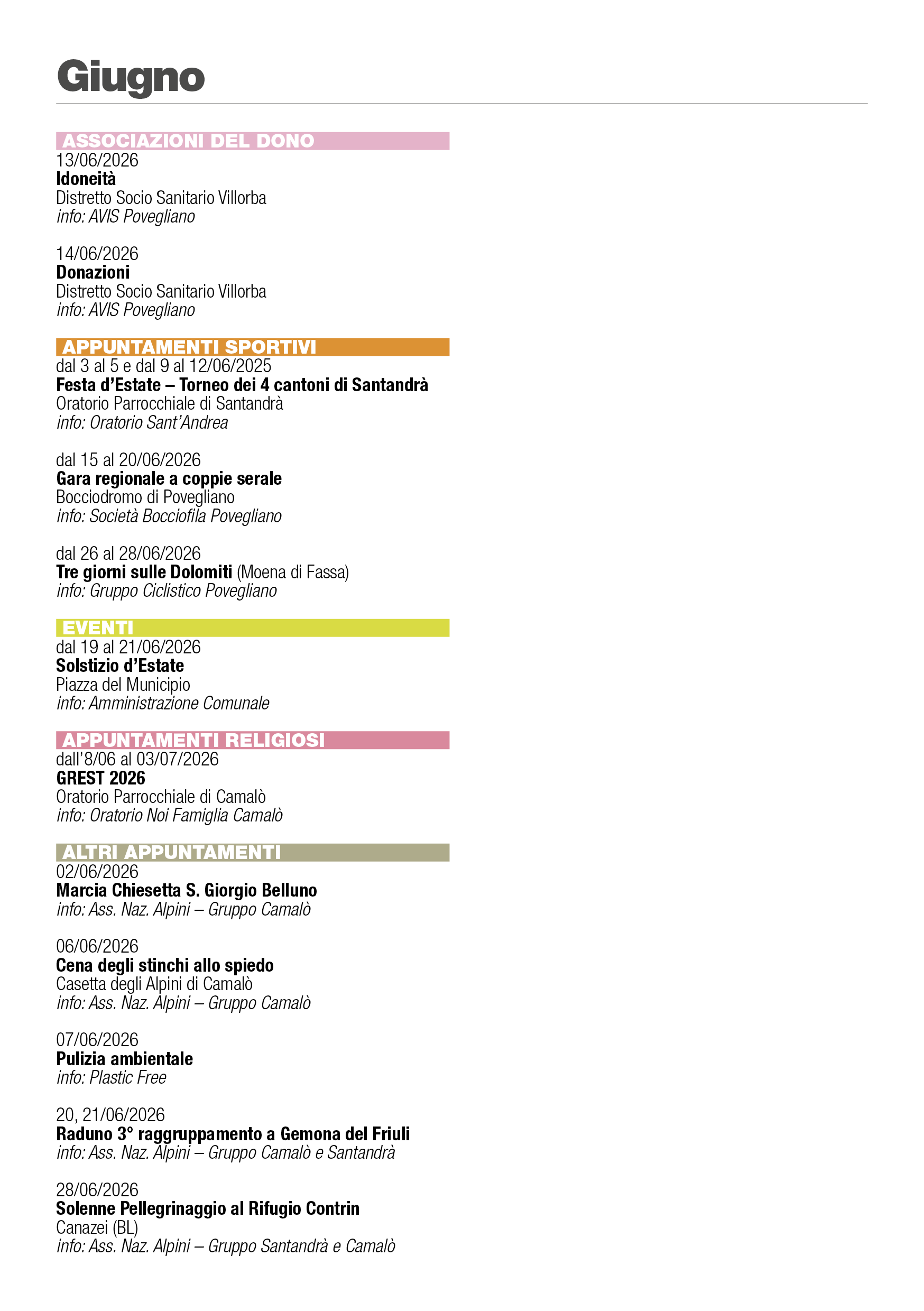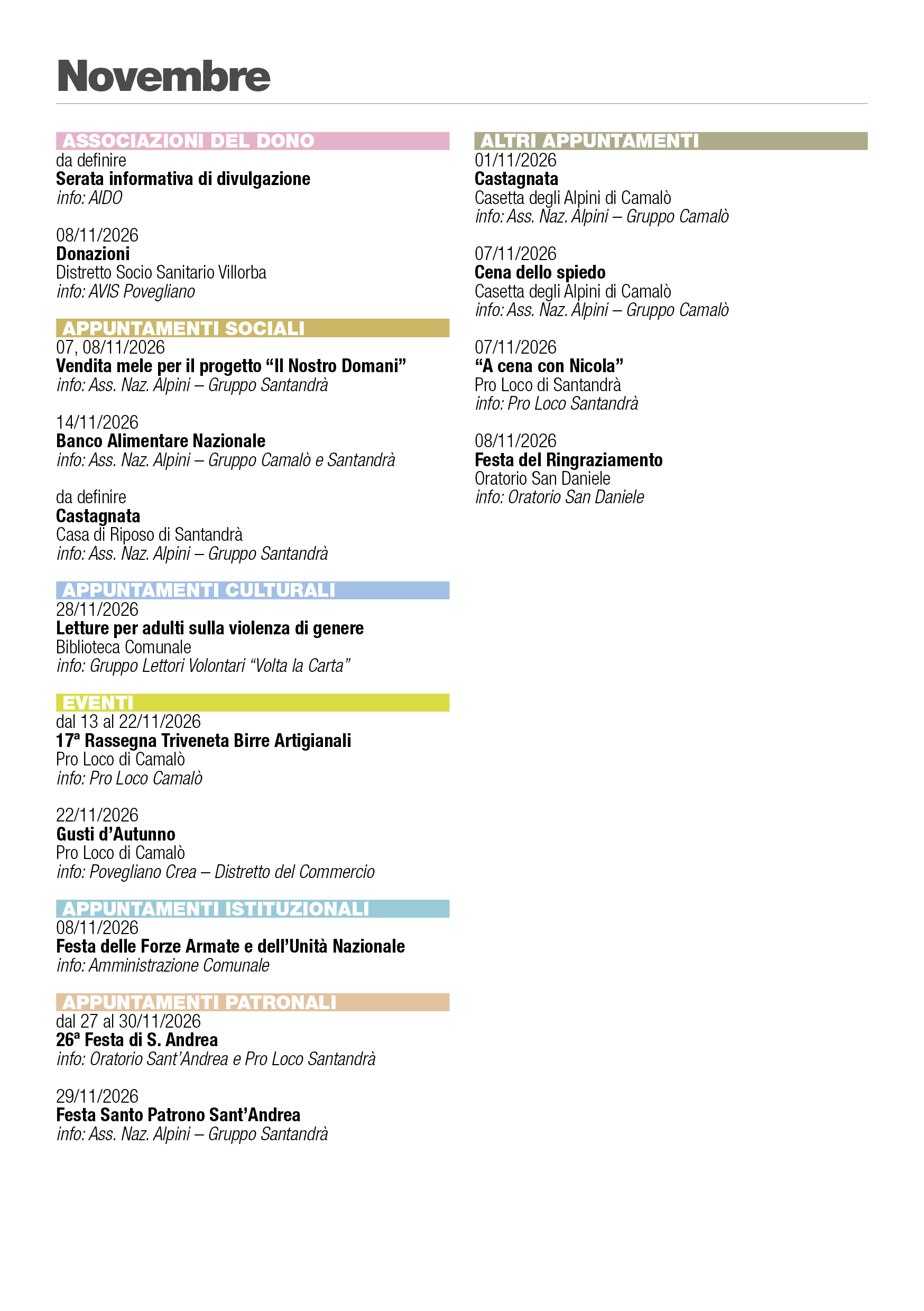 Eventi Povegliano 2026