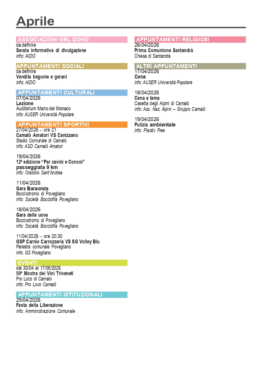 Scopri l'opuscolo contenente tutti gli eventi presenti nel territorio comunale per l'anno 2026!